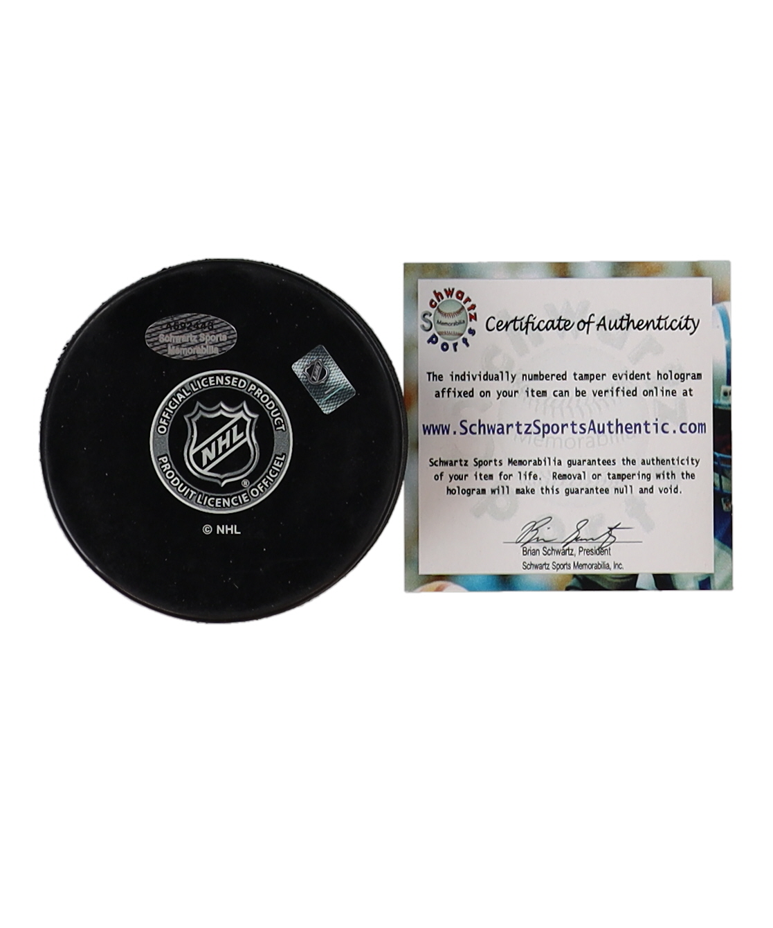 Ed Belfour Signed Blackhawks Logo Hockey Puck (Schwartz)
