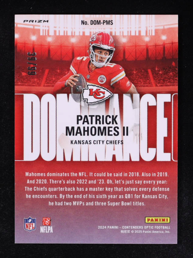 Patrick Mahomes II 2024 Panini Contenders Optic Dominance Blue #3 #38/99