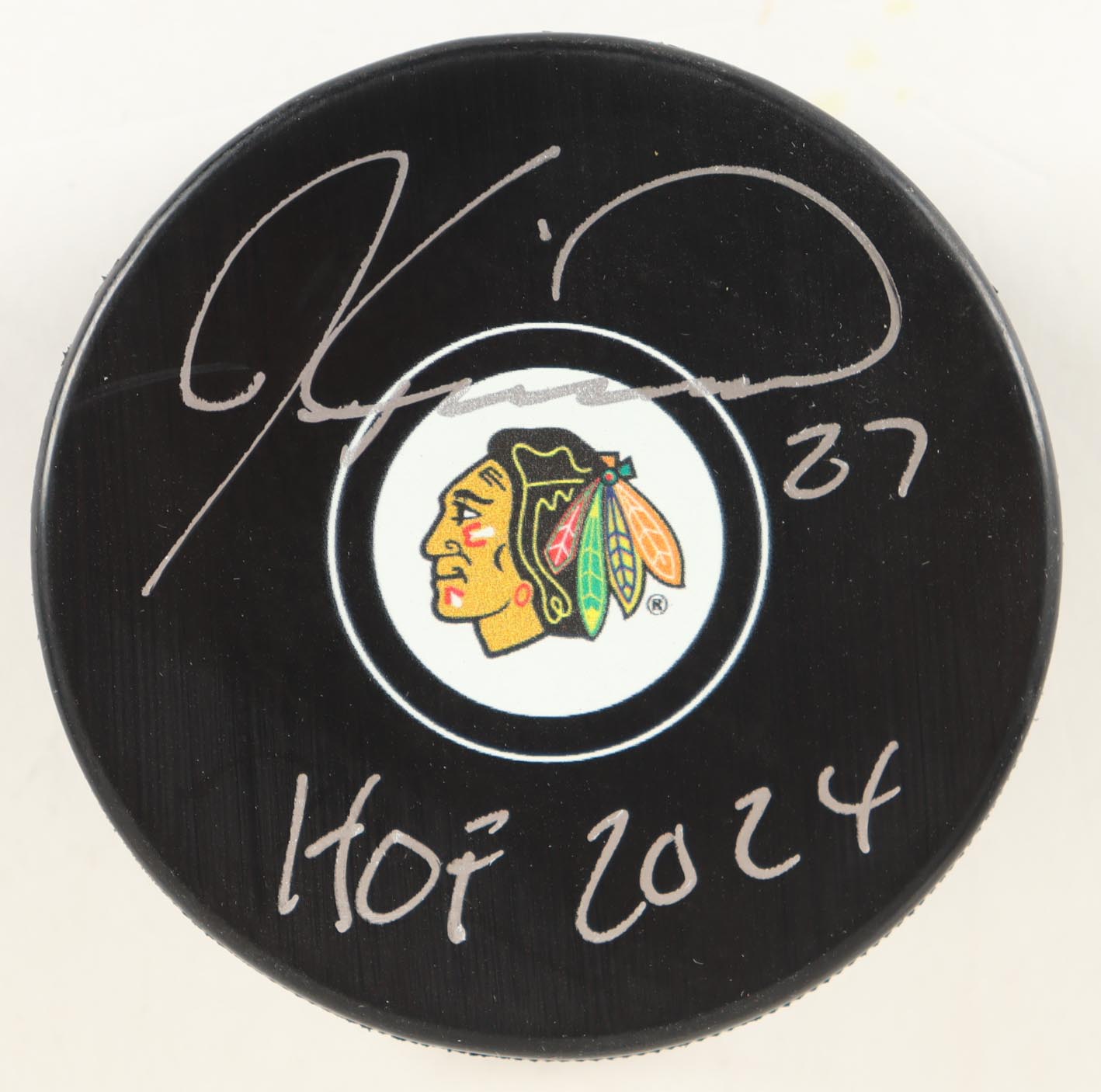 Jeremy Roenick Signed Blackhawks Logo Hockey Puck Inscribed "HOF 2024" (Schwartz)