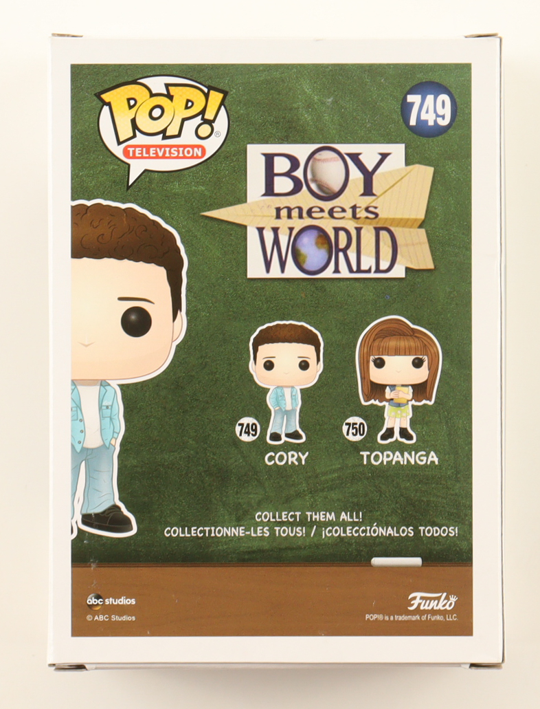 Funko pop! vinyl figure measures approximately 4" tall and has been hand-signed and inscribed on the packaging by Ben Savage (Cory Matthews). Please note that the original packaging shows signs of damage.