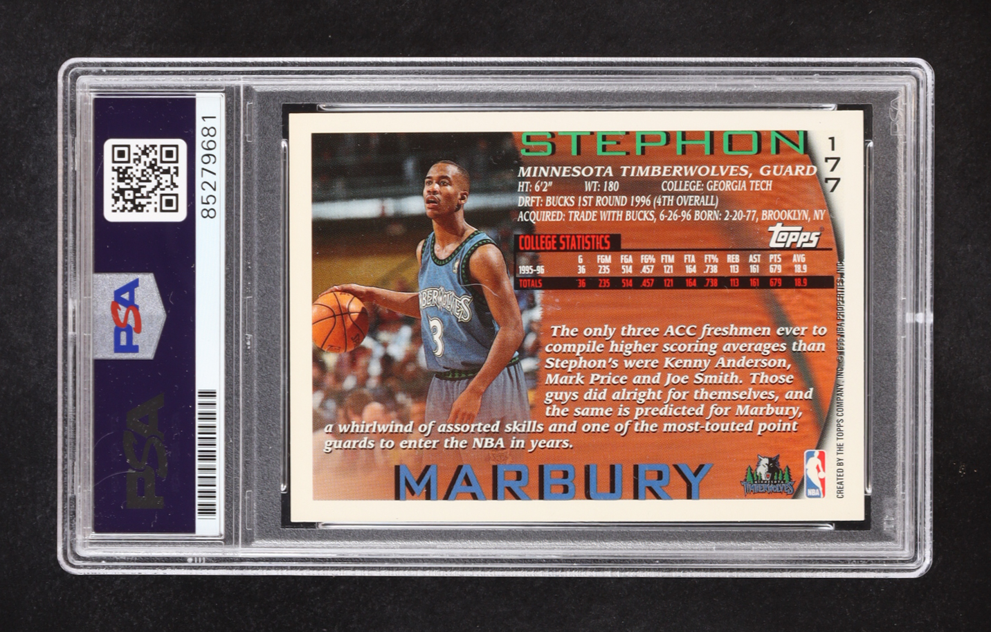 Stephon Marbury Signed 1996 Topps #177 RC (PSA | Autograph Graded PSA 10)