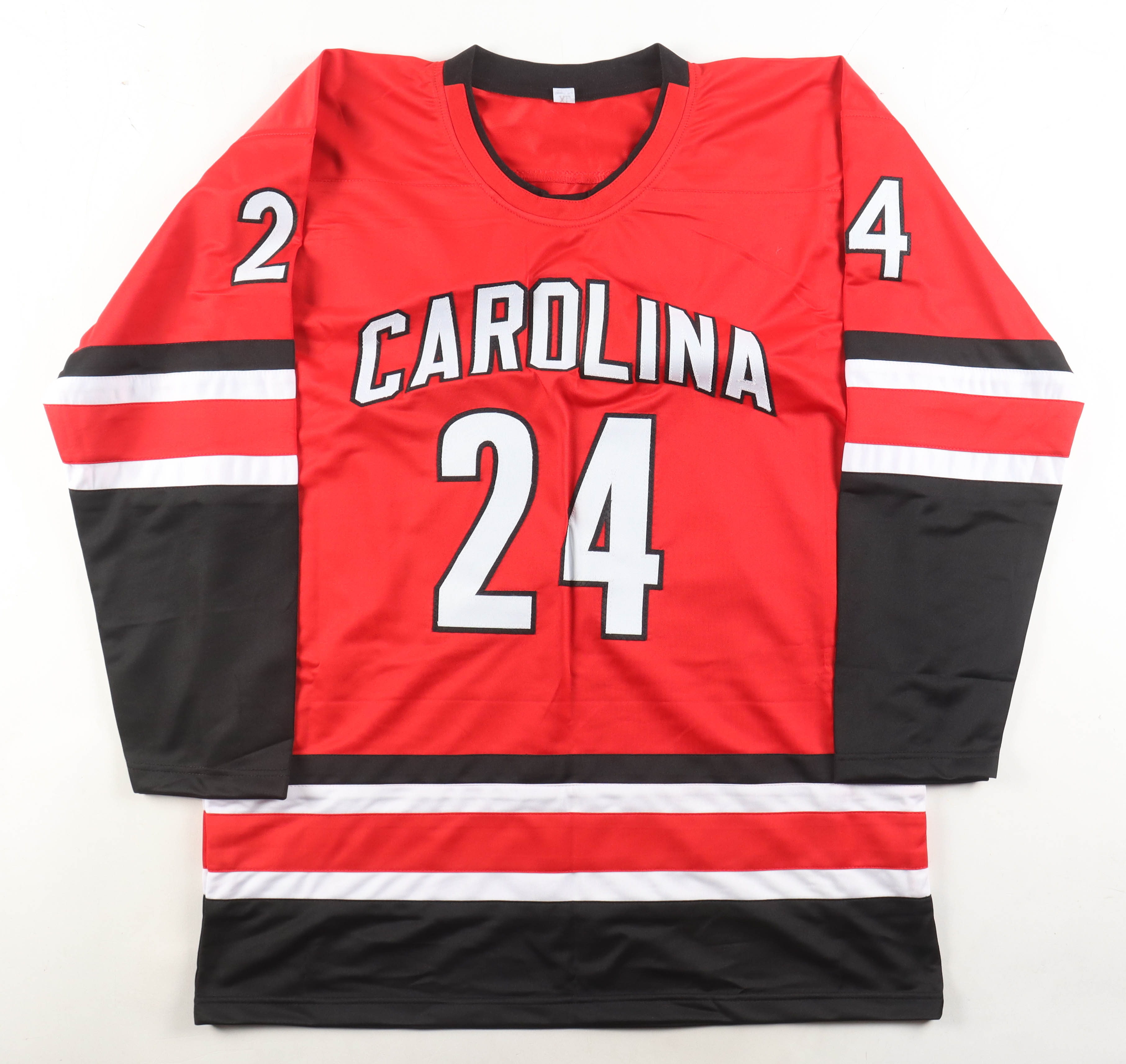 Custom hockey jersey. Everything is sewn on, size XL. Hand-signed by Seth Jarvis.