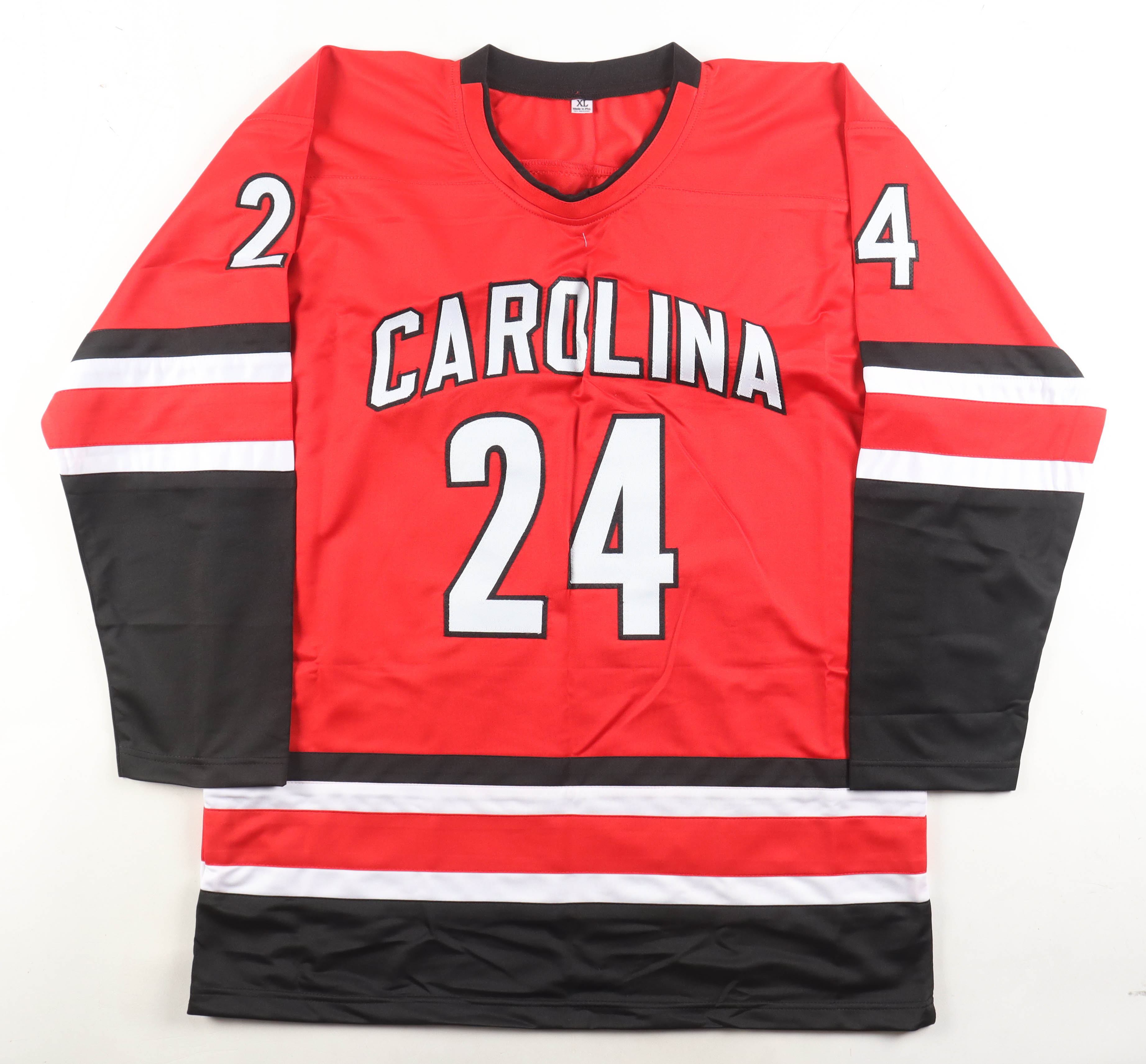 Custom hockey jersey. Everything is sewn on, size XL. Hand-signed by Seth Jarvis.