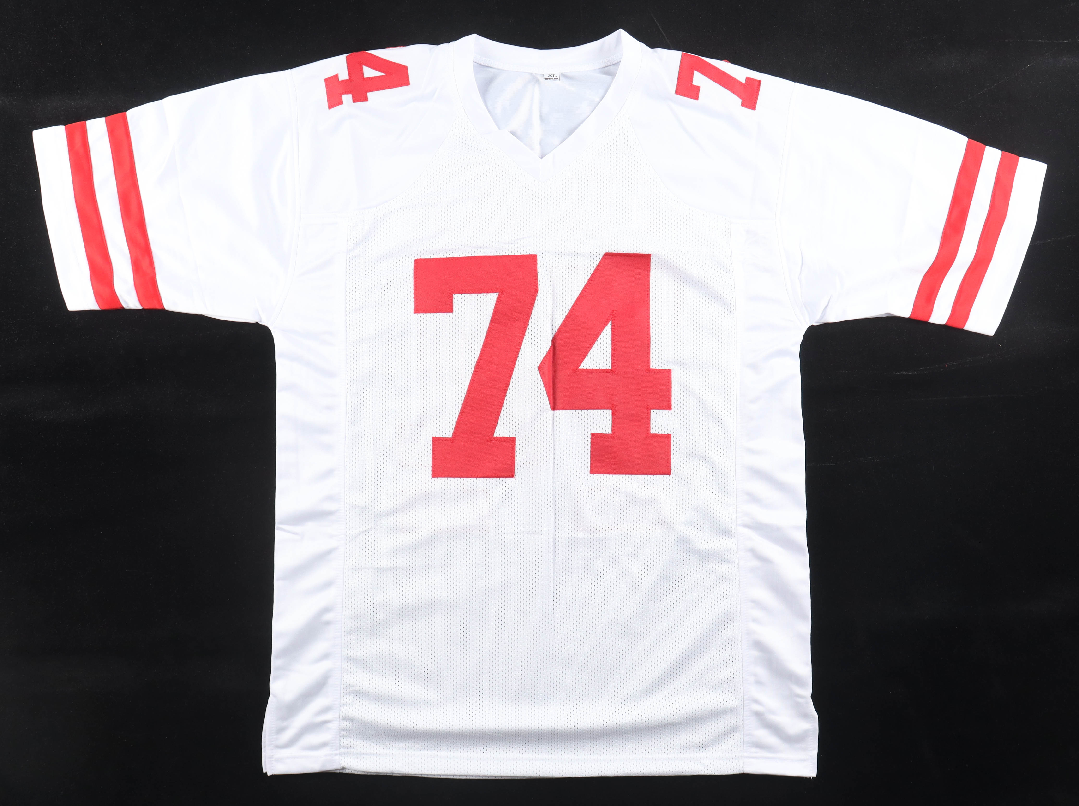 Custom jersey with everything sewn on, size XL. Hand-signed by Joe Staley.