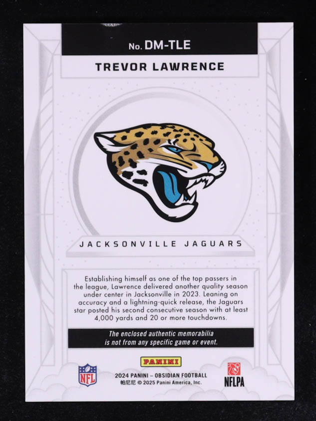 Trevor Lawrence 2024 Panini Obsidian Dusk Memorabilia #5