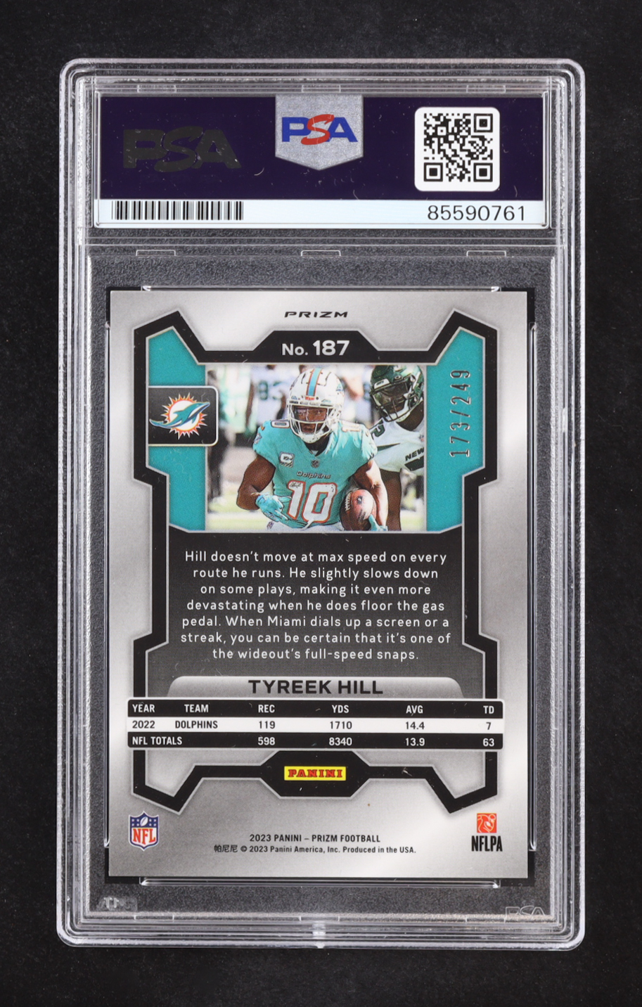 Tyreek Hill Signed 2023 Panini Prizm Orange #187 #173/249 (PSA)
