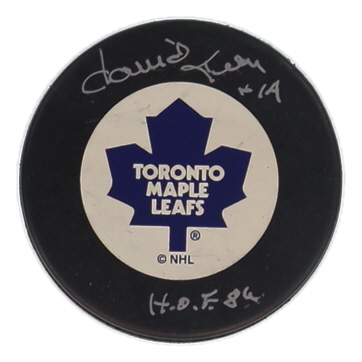 Toronto Maple Leafs logo puck has been hand-signed and inscribed by Dave Keon (D. 1998, HOF).