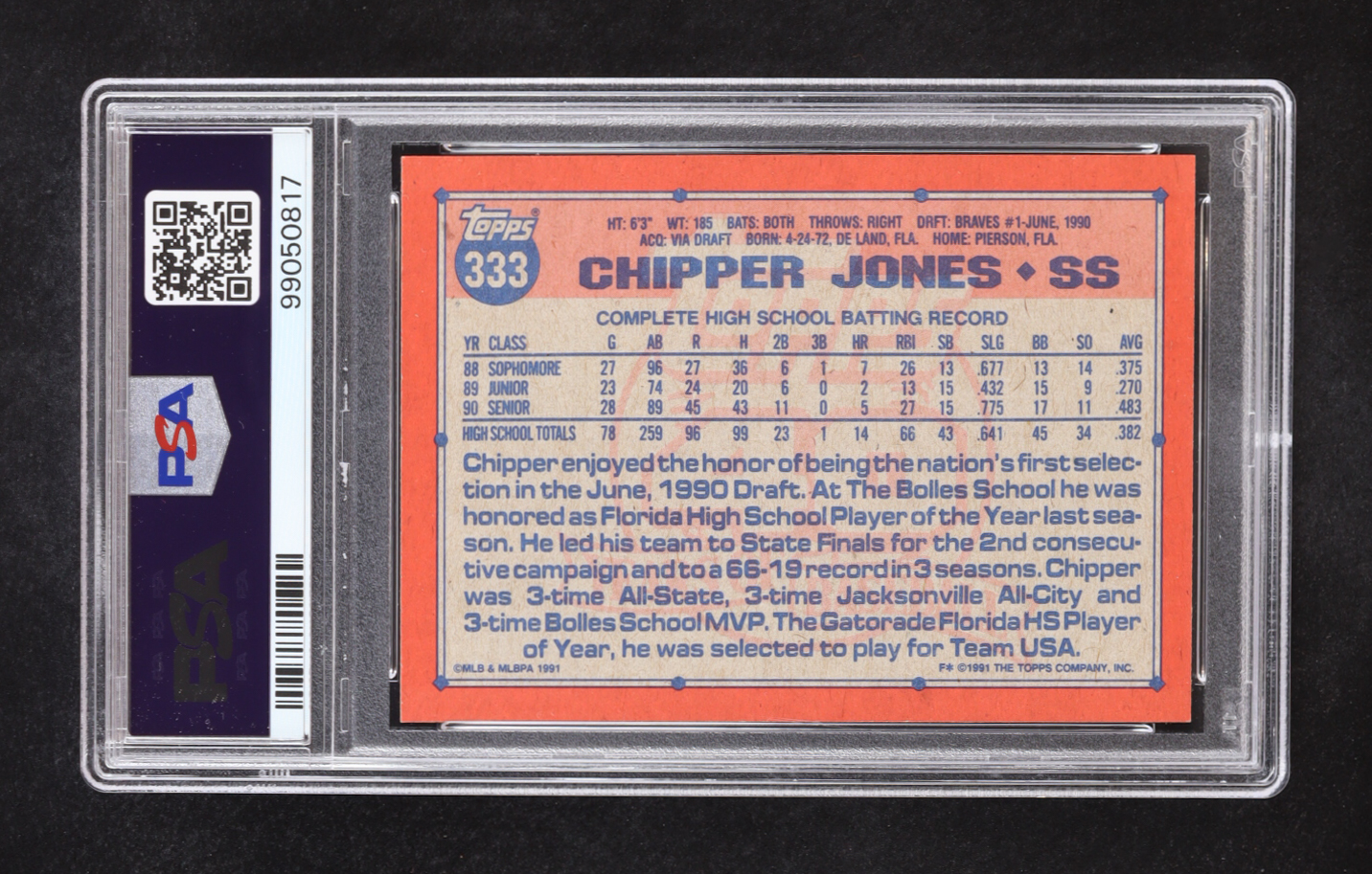 Chipper Jones Signed 1991 Topps #333 RC (PSA Authentic | Autograph Graded PSA 10)
