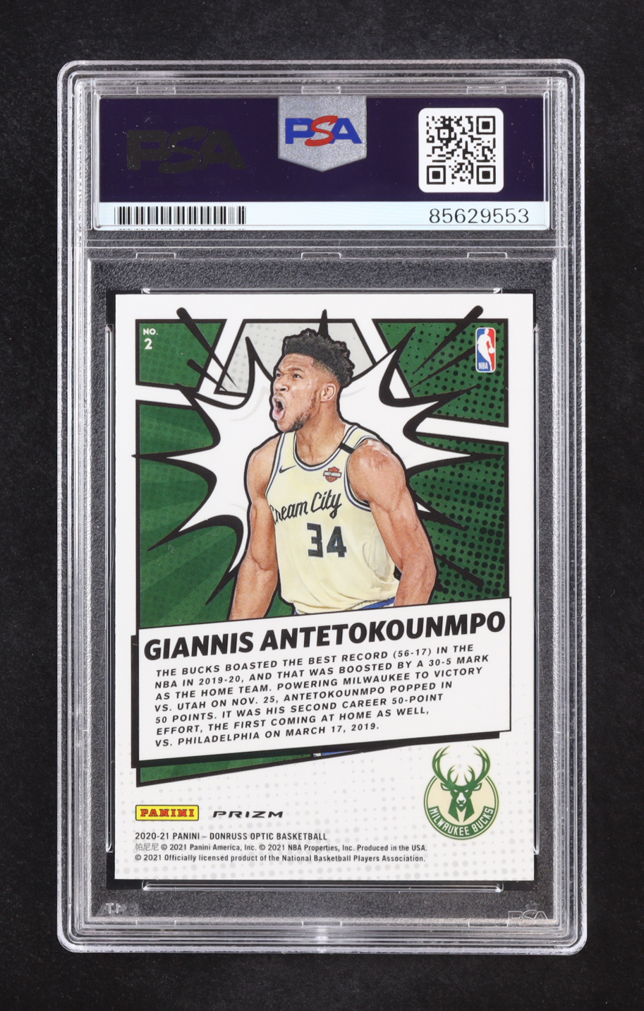 Giannis Antetokounmpo Signed 2020-21 Panini Prizm Donruss Optic My House! Green Holo #2 (PSA | Autograph Graded PSA 10)