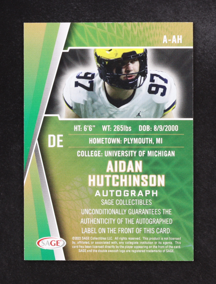Aidan Hutchinson 2022 SAGE Artistry Autographs Red #AAH RC