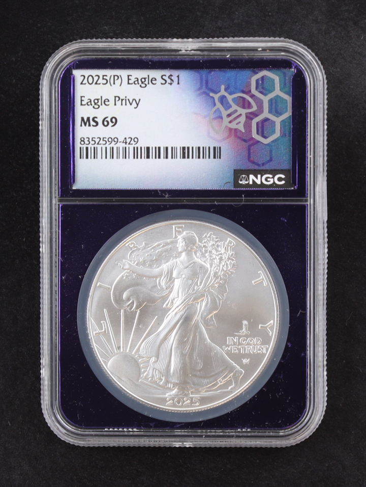2025(P) American Silver Eagle, Eagle Privy - Limited Mintage of 500,000 (NGC MS69)