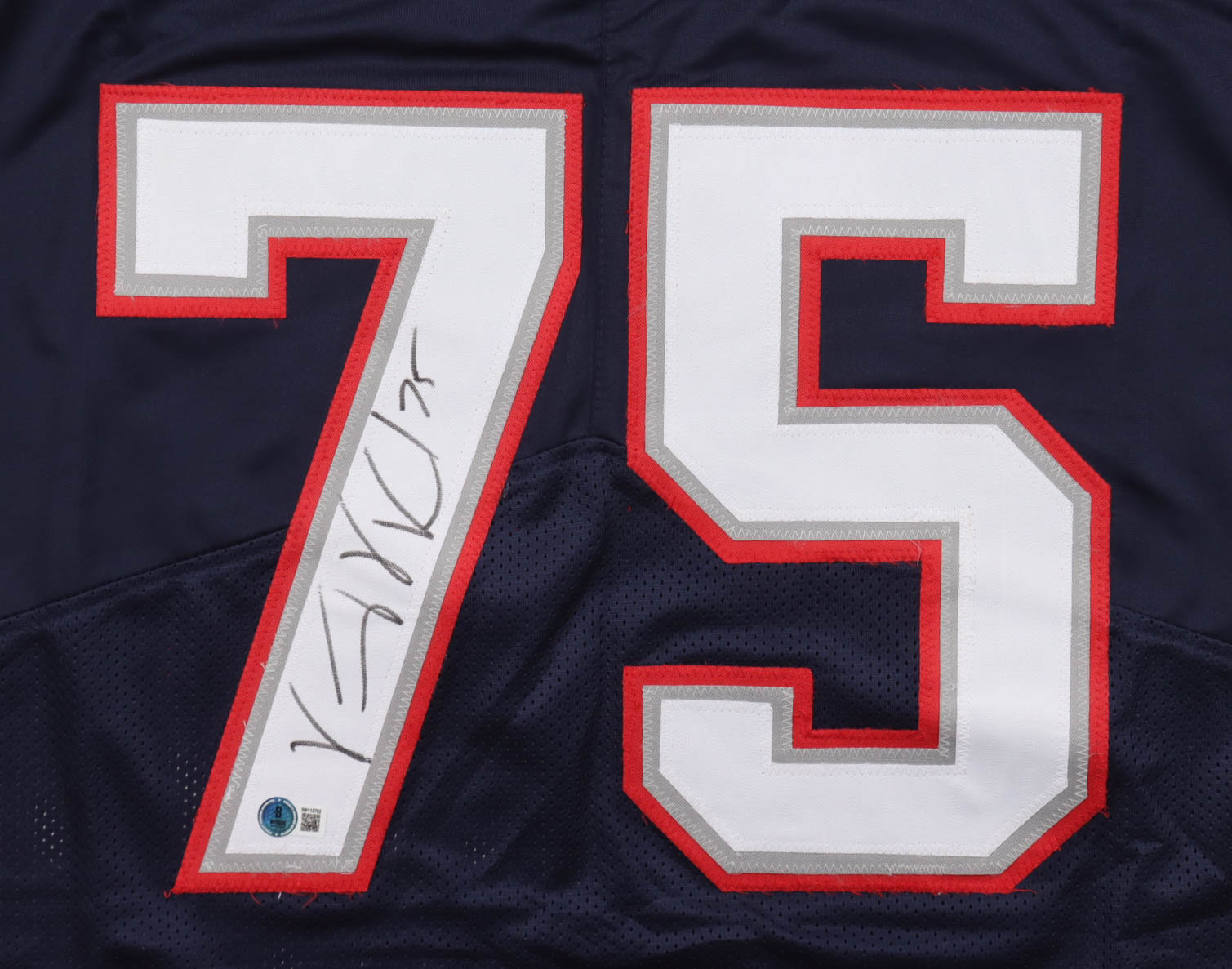 Custom jersey with everything sewn on, size XL. Hand-signed by Vince Wilfork.