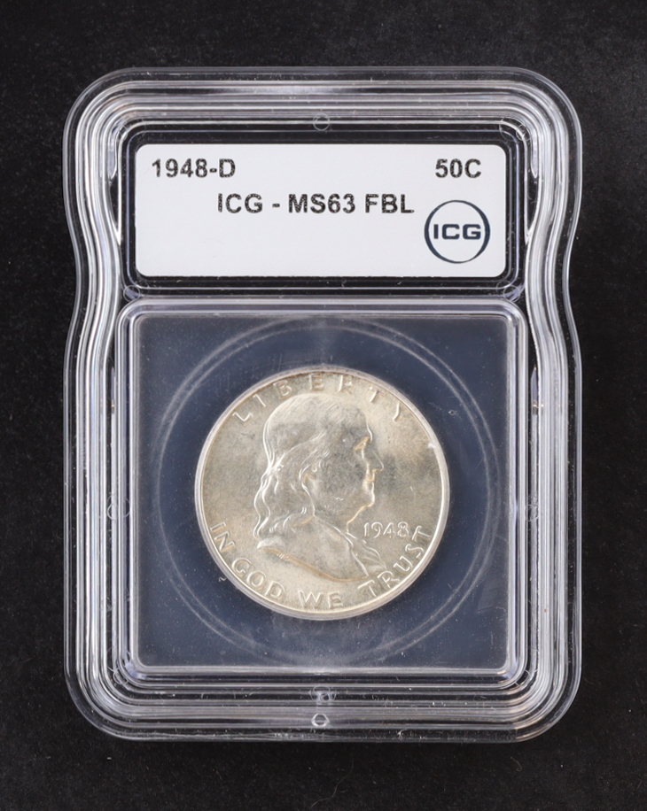 1948-D Franklin 50C Silver Half Dollar, Full Bell Lines (ICG MS63 FBL)