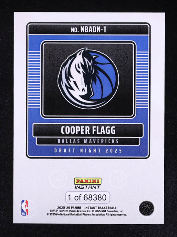 Cooper Flagg 2025-26 Panini Instant Draft Night #NBADN1 RC