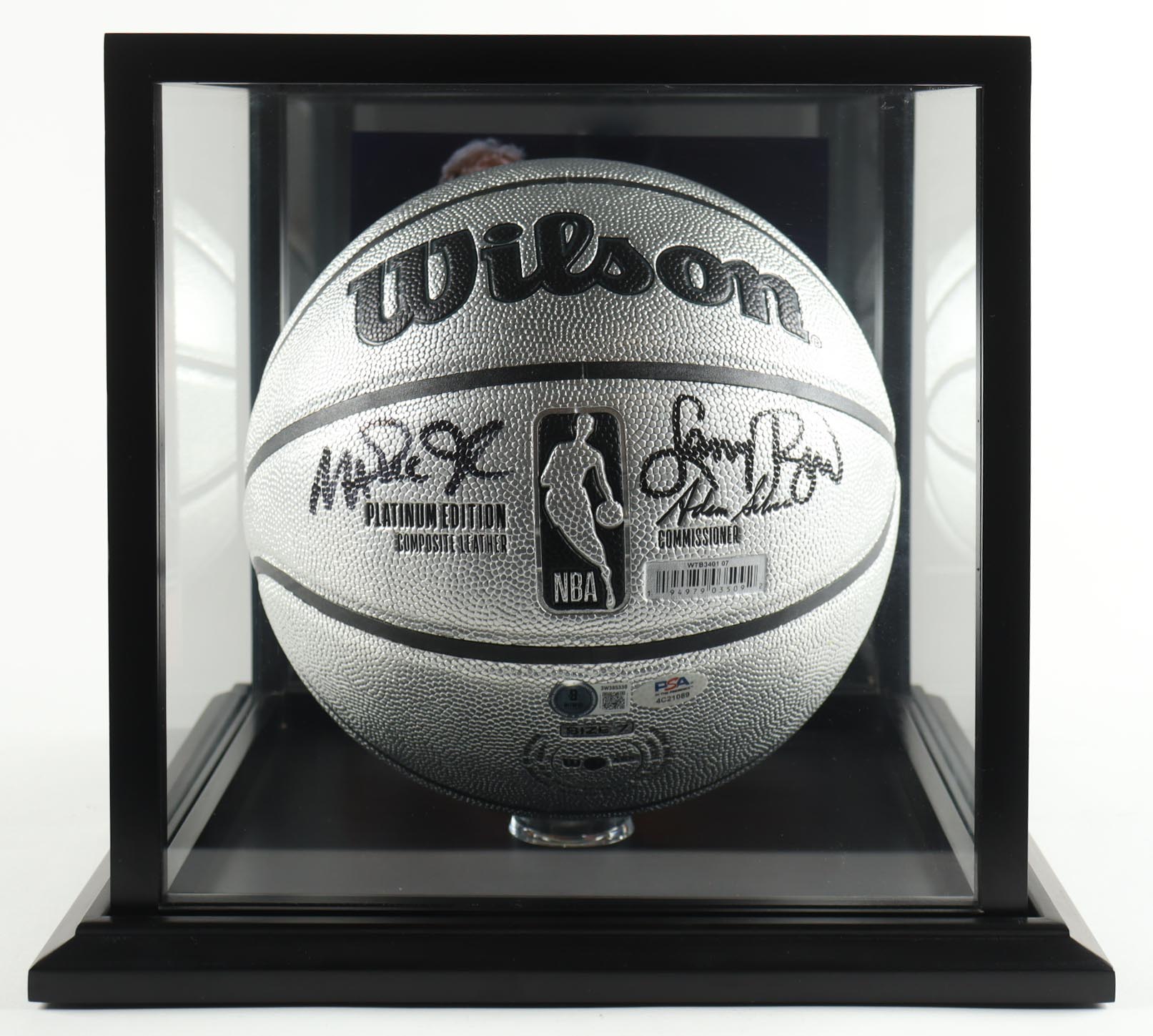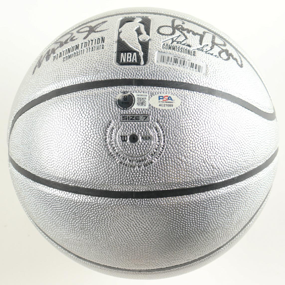 Wilson NBA Platinum Edition basketball. Hand-signed by Larry Bird (Boston Celtics, HOF) and Magic Johnson (Los Angeles Lakers, HOF). Display case is included as shown.