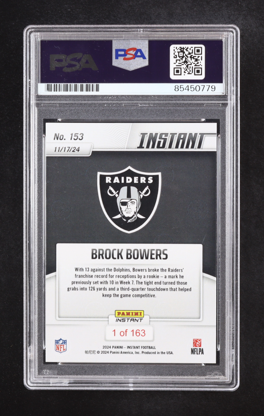 Brock Bowers Signed 2024 Panini Instant #153 RC (PSA)