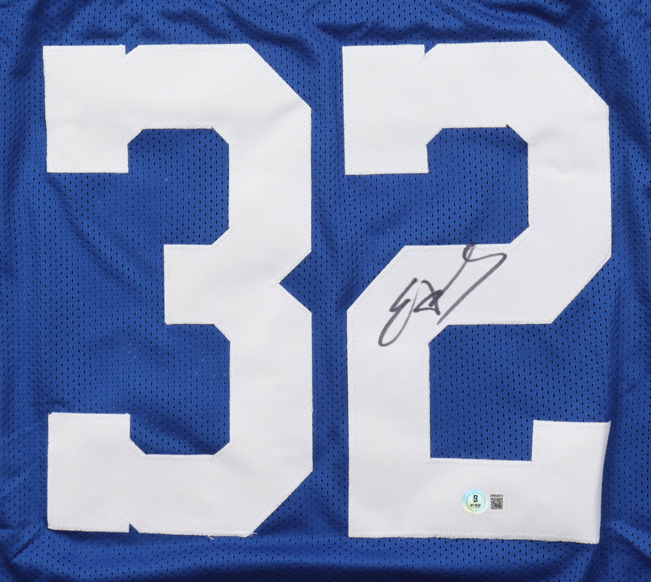 Custom jersey with everything sewn on, size XL. Hand-signed by Edgerrin James.