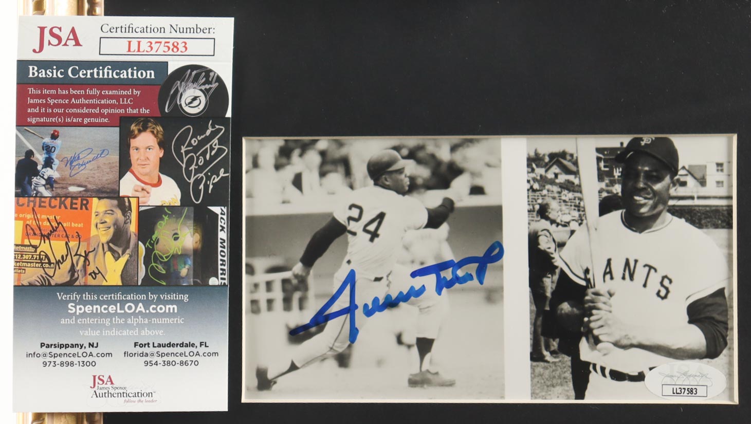 Custom frame measures approximately 12" x 12" in size and features a photo that has been hand-signed by Willie Mays (D. 2024, New York Giants, HOF). Display also features a full Willie Mays title plaque. Please refer to photos for more details.