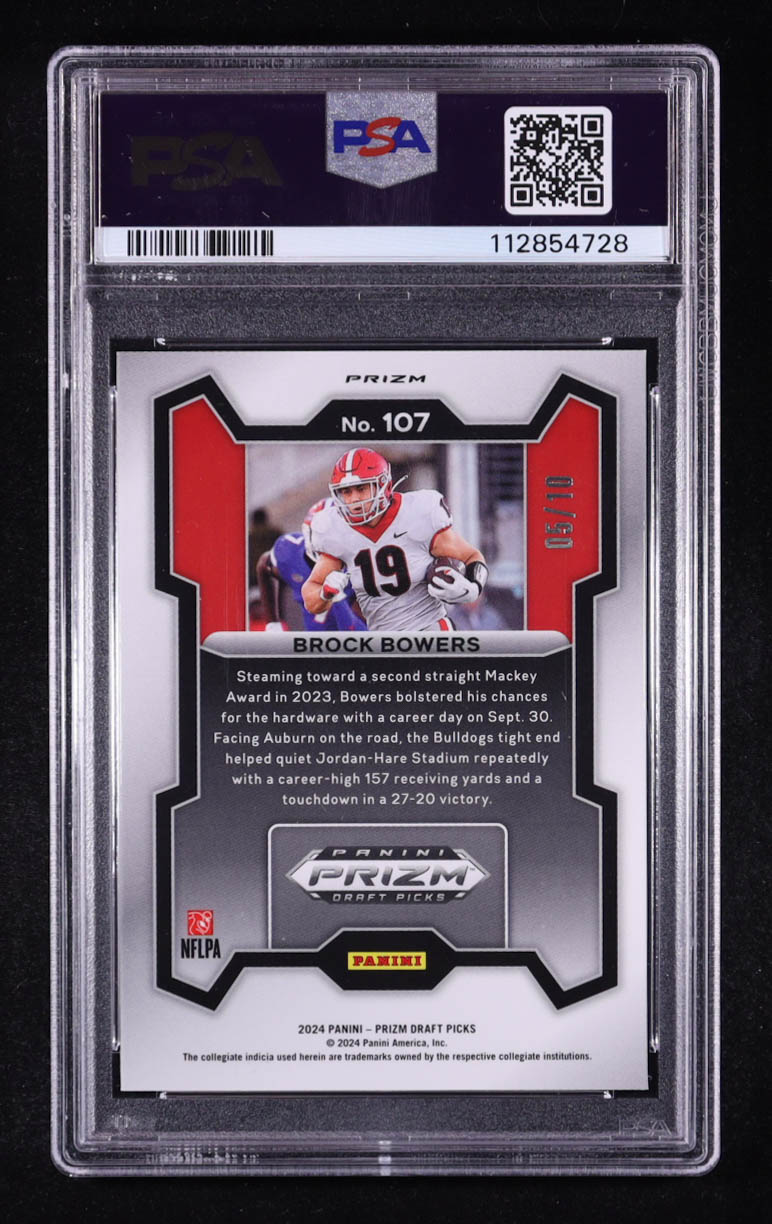 Brock Bowers 2024 Panini Prizm Draft Picks Gold Prizm #107 RC #5/10 (PSA 9)