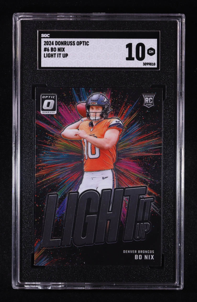 Bo Nix 2024 Donruss Optic Light It Up #6 RC (SGC 10)