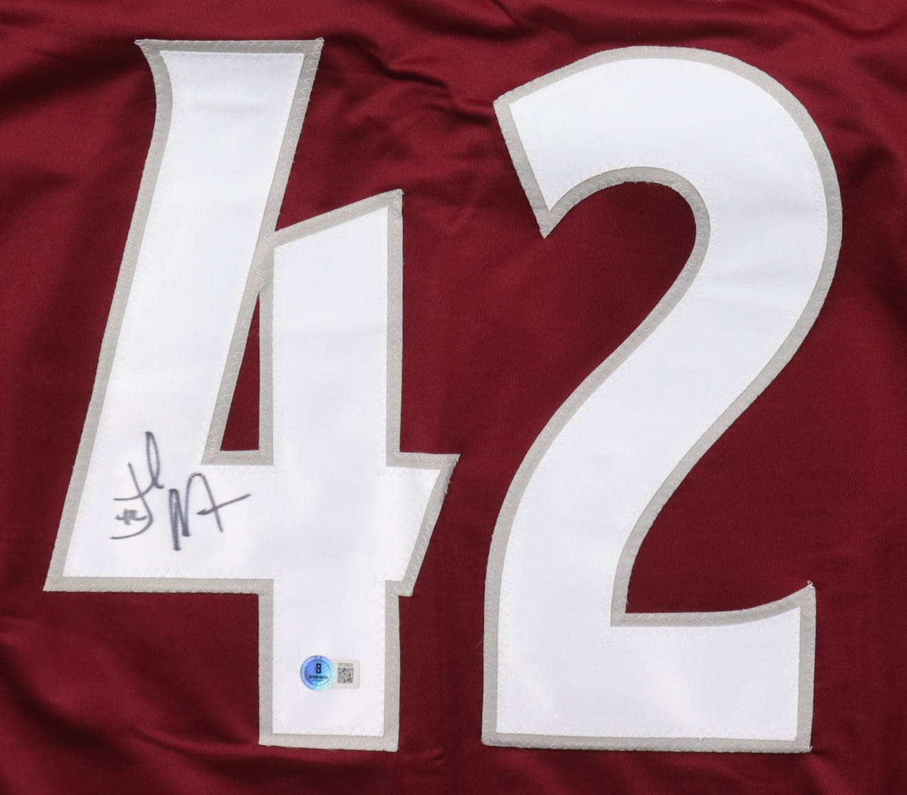 Custom jersey with everything sewn on, size XL. Hand-signed by Josh Manson.