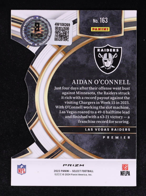 Aidan O'Connell Signed 2023 Select Prizm Red and Yellow Die Cut #163 RC (Beckett)