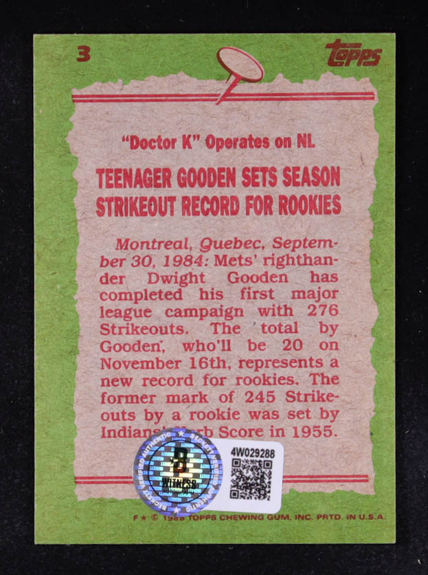 Card has been hand signed by Dwight Gooden (New York Mets). Please see photos for more details regarding the condition of the card.