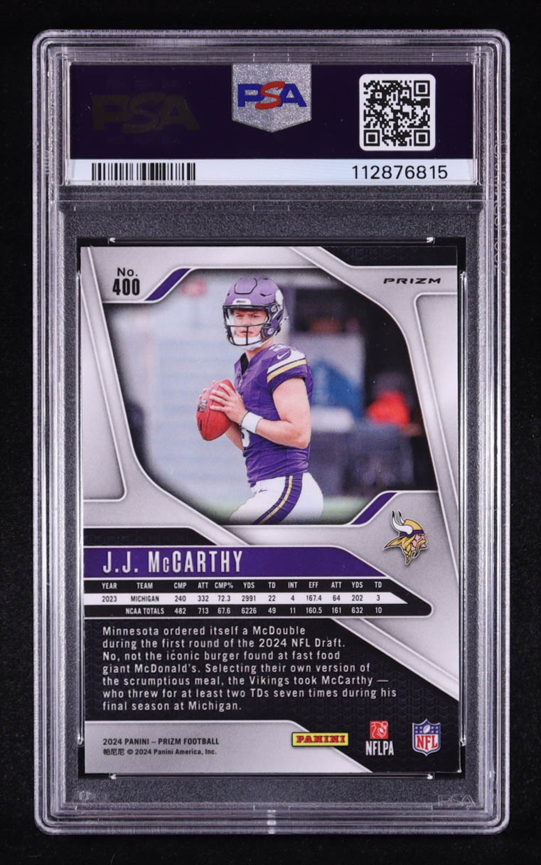 JJ McCarthy 2024 Panini Prizm Neon Green Pulsar #400 RC (PSA 9)