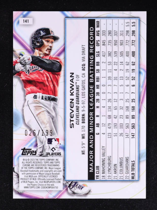 Steven Kwan 2023 Topps Cosmic Chrome Aqua Equinox Refractors #141 #026/199