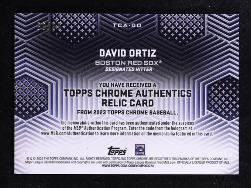 David Ortiz 2023 Topps Chrome Authentics Relics Green Refractors #TCADO #88/99