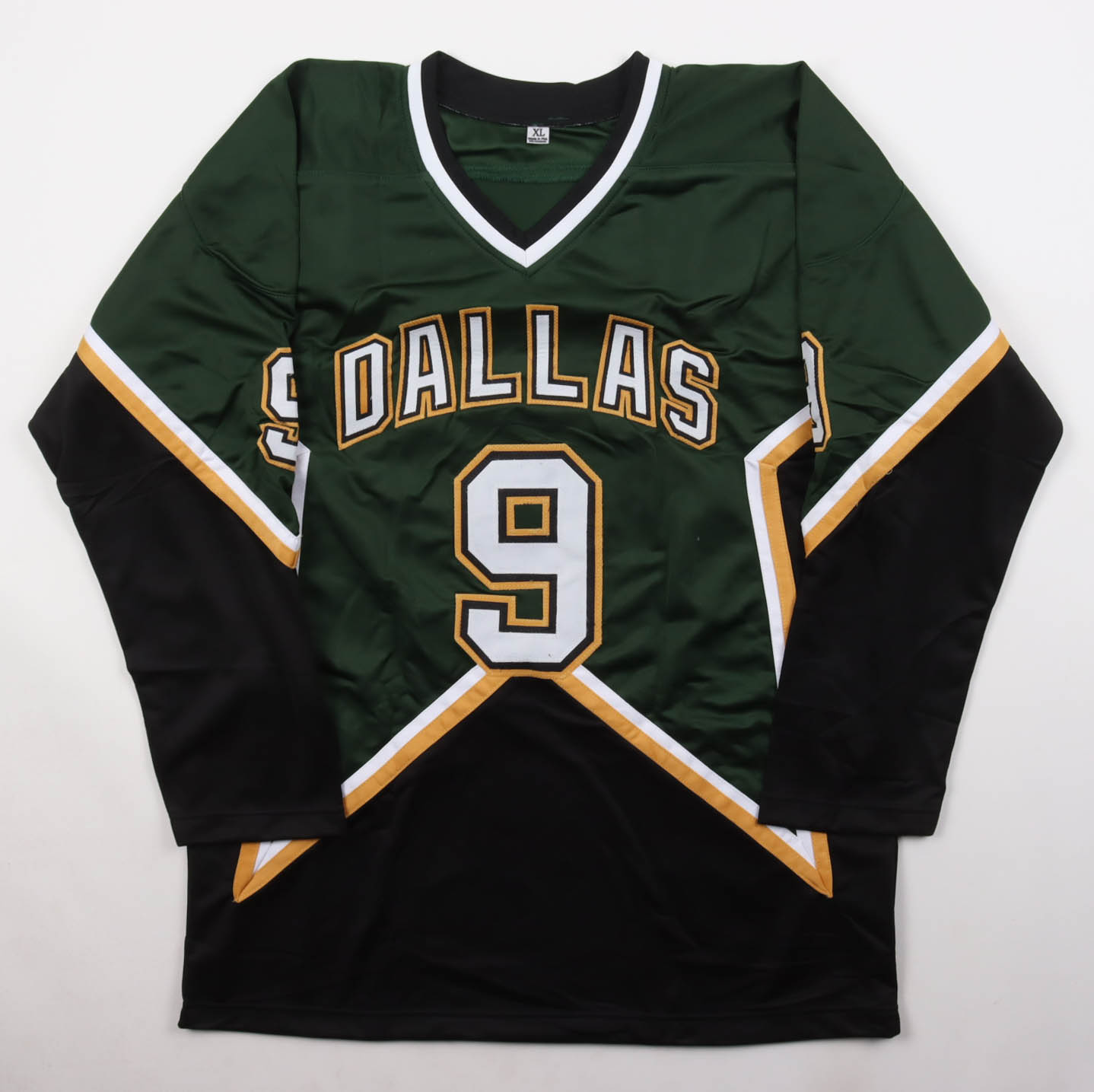 Custom jersey with everything sewn on, size XL. Hand-signed and inscribed by Mike Modano (HOF).