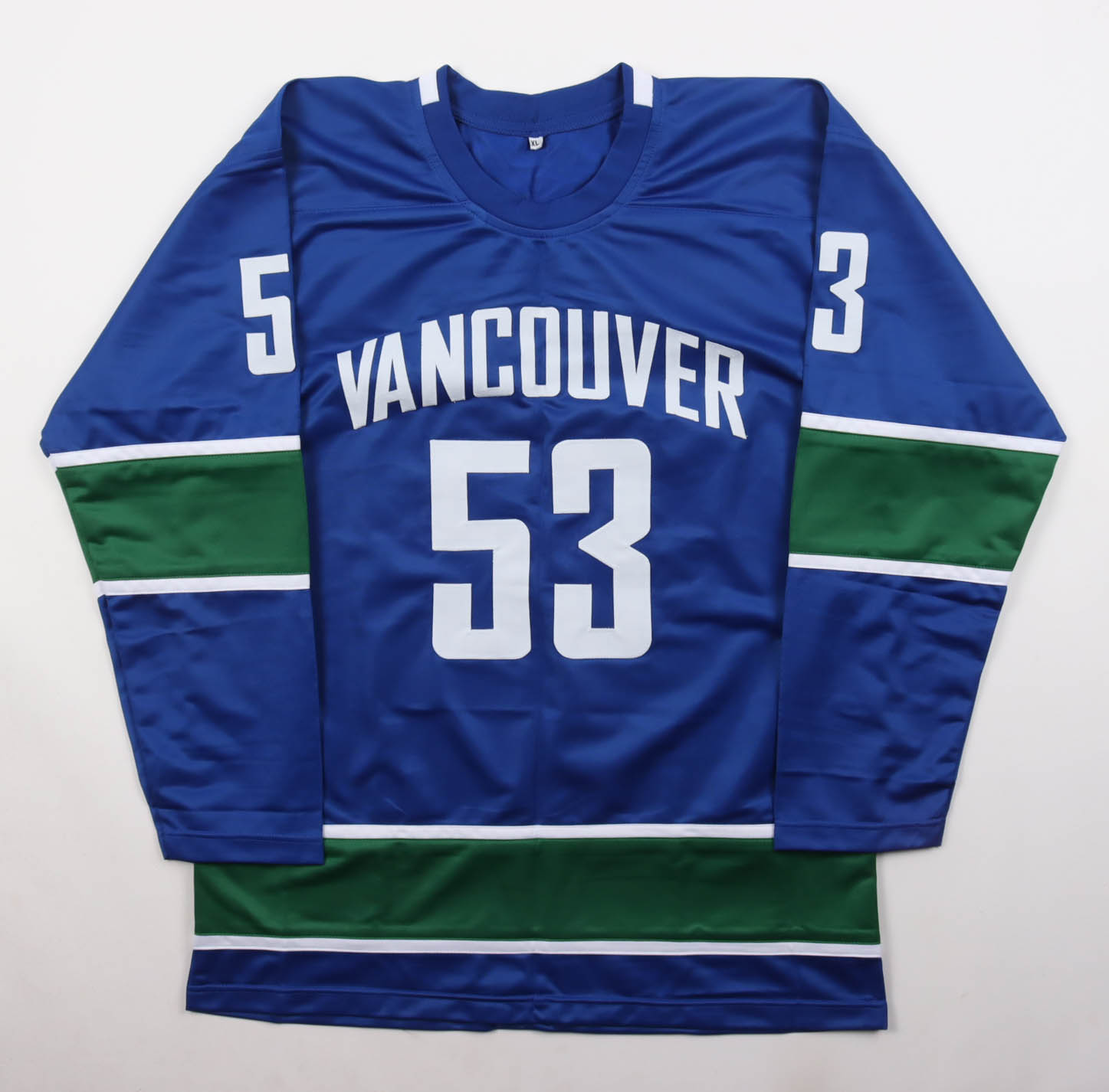 Custom jersey. Everything is sewn on, size XL. Has been hand-signed by Bo Horvat.