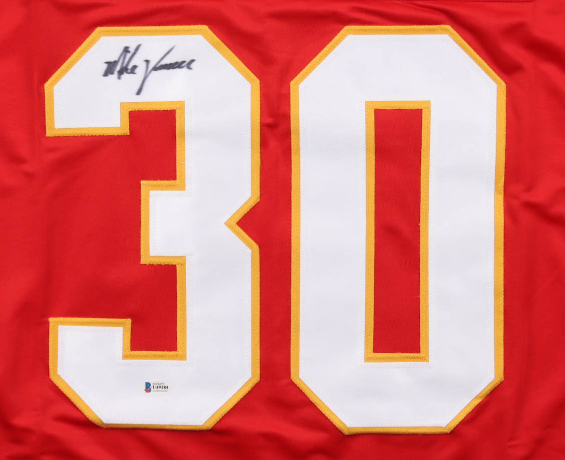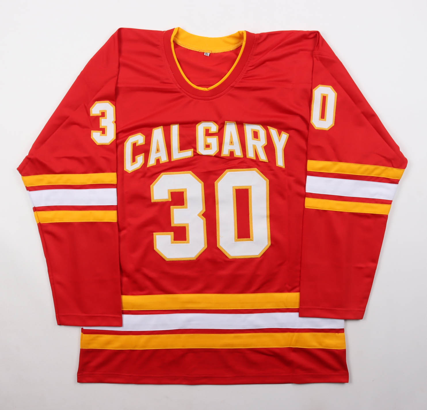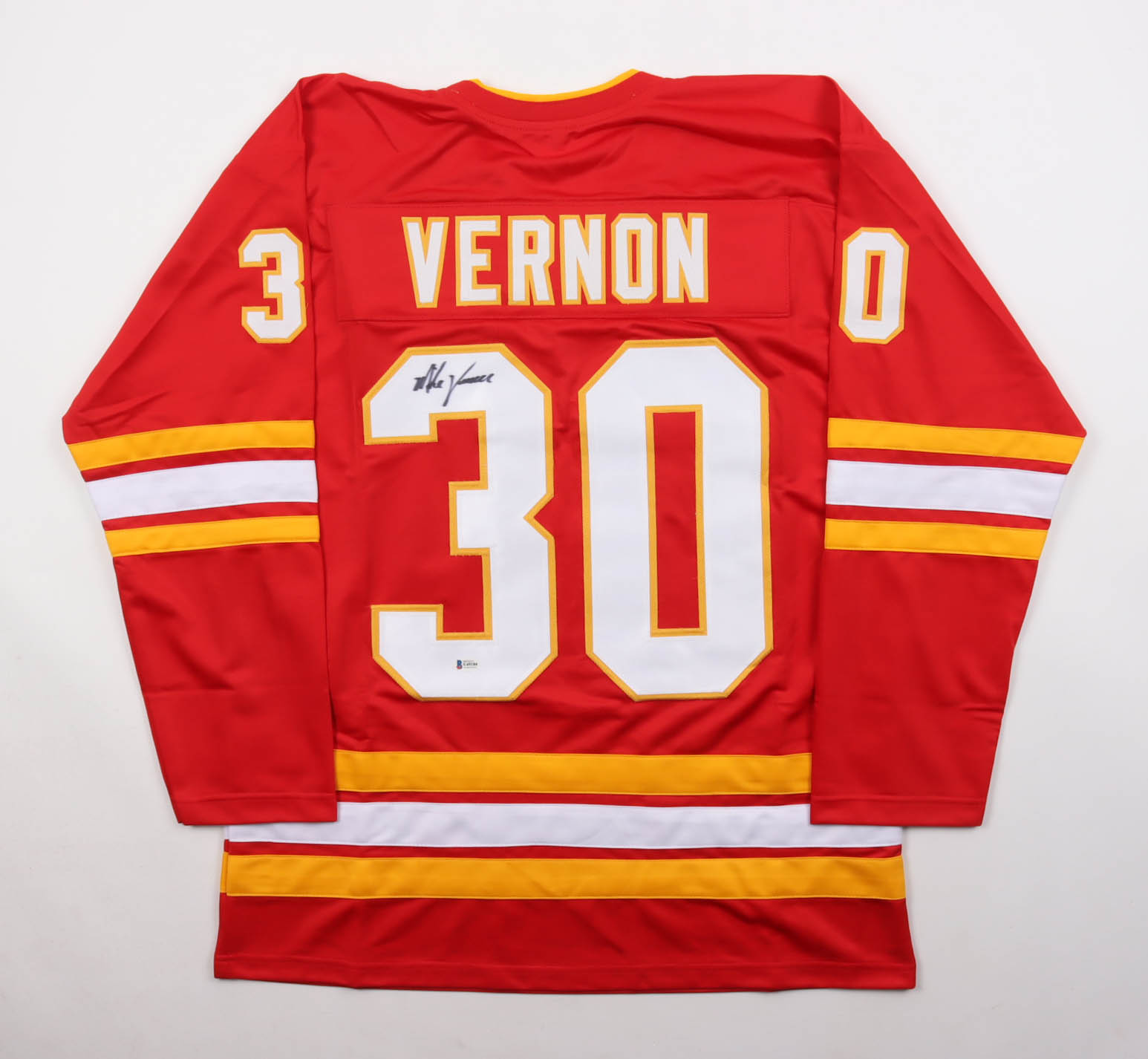 Custom jersey with everything sewn on, size XL. Hand-signed by Mike Vernon. Please note, the signature has bled.