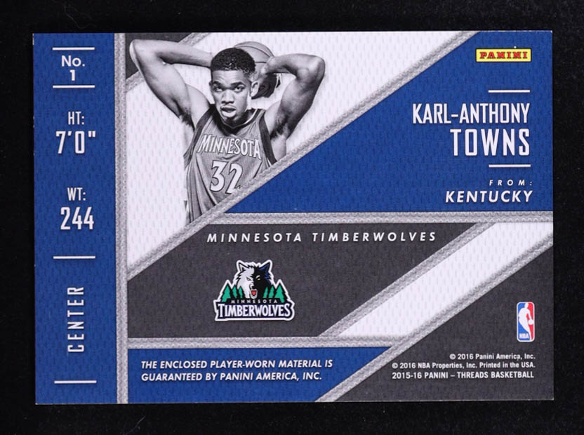 Karl-Anthony Towns 2016-17 Panini Threads Authentic Threads #1 RC