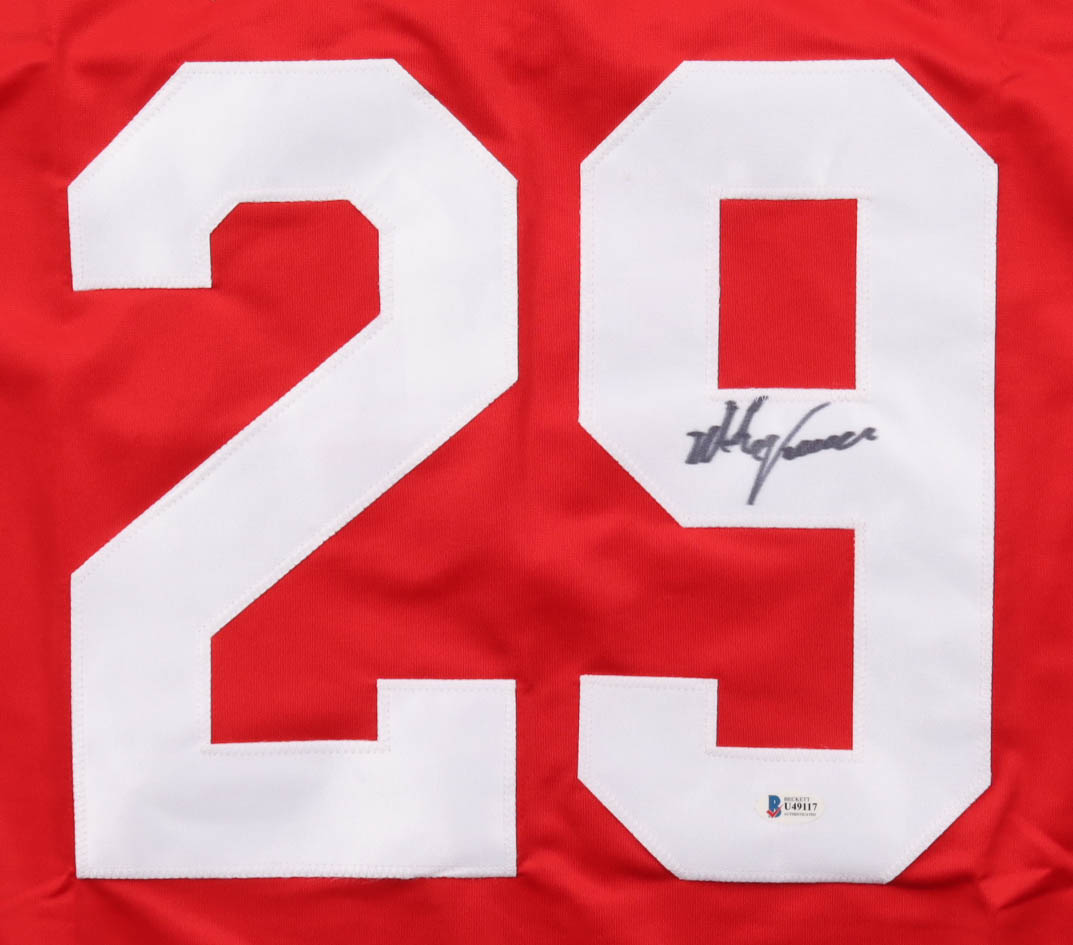 Custom jersey with everything sewn on, size XL. Hand-signed by Mike Vernon.