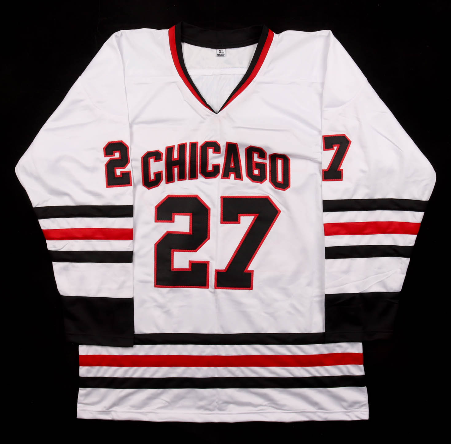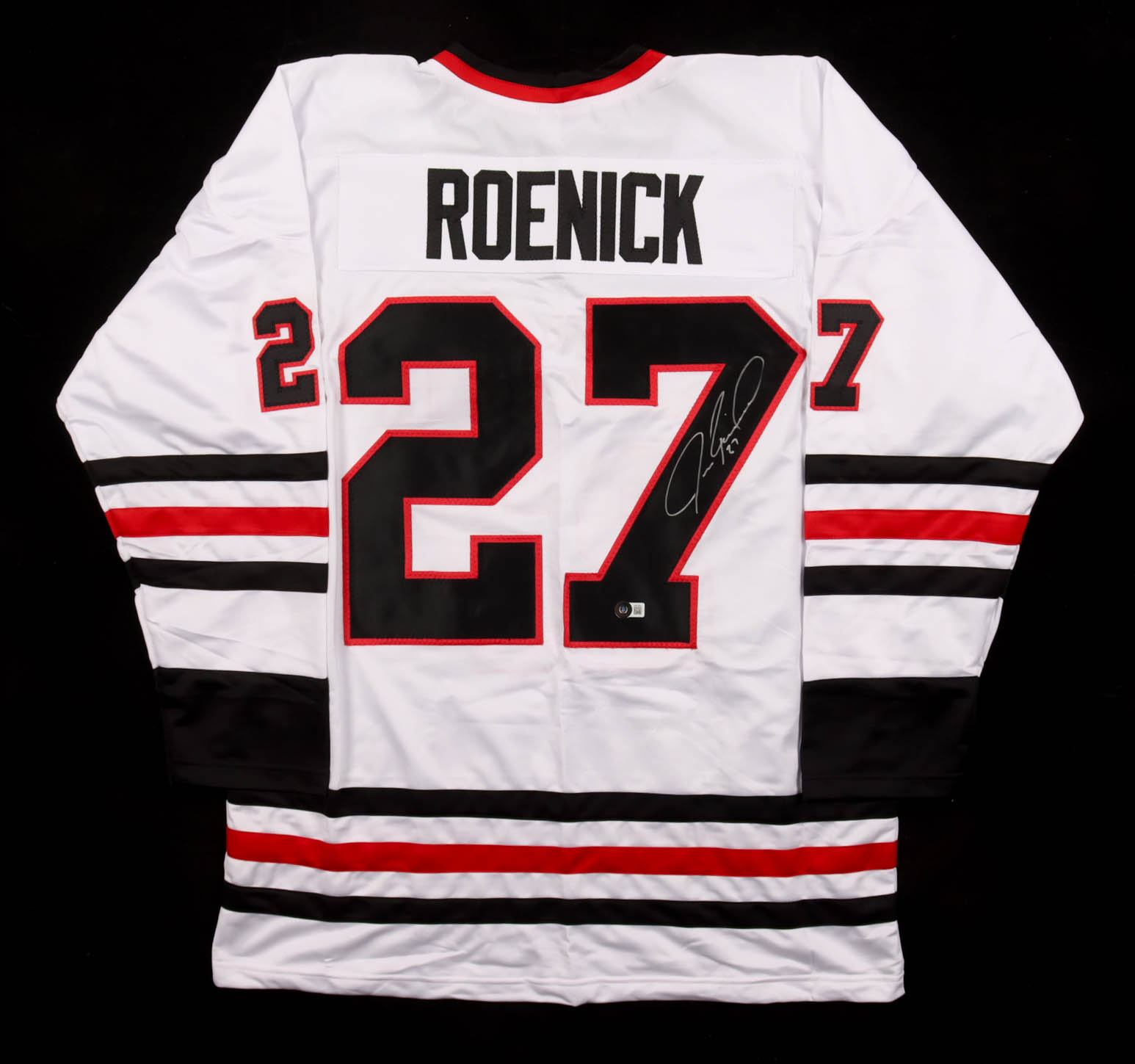 Custom jersey with everything sewn on, size XL. Hand-signed by Jeremy Roenick (HOF).