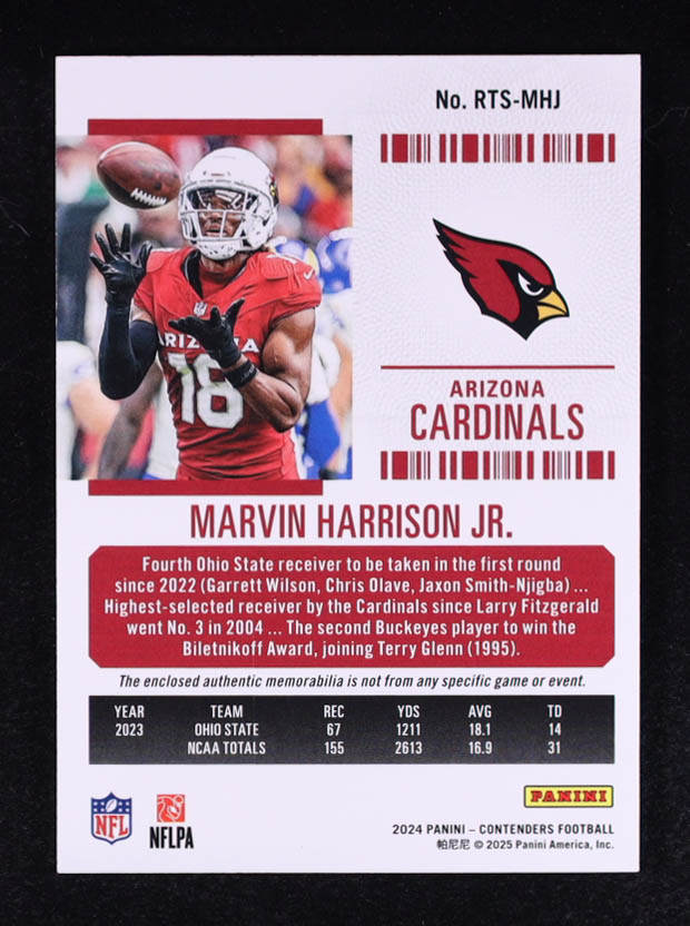 Marvin Harrison Jr. 2024 Panini Contenders Rookie Ticket Swatches #30 RC