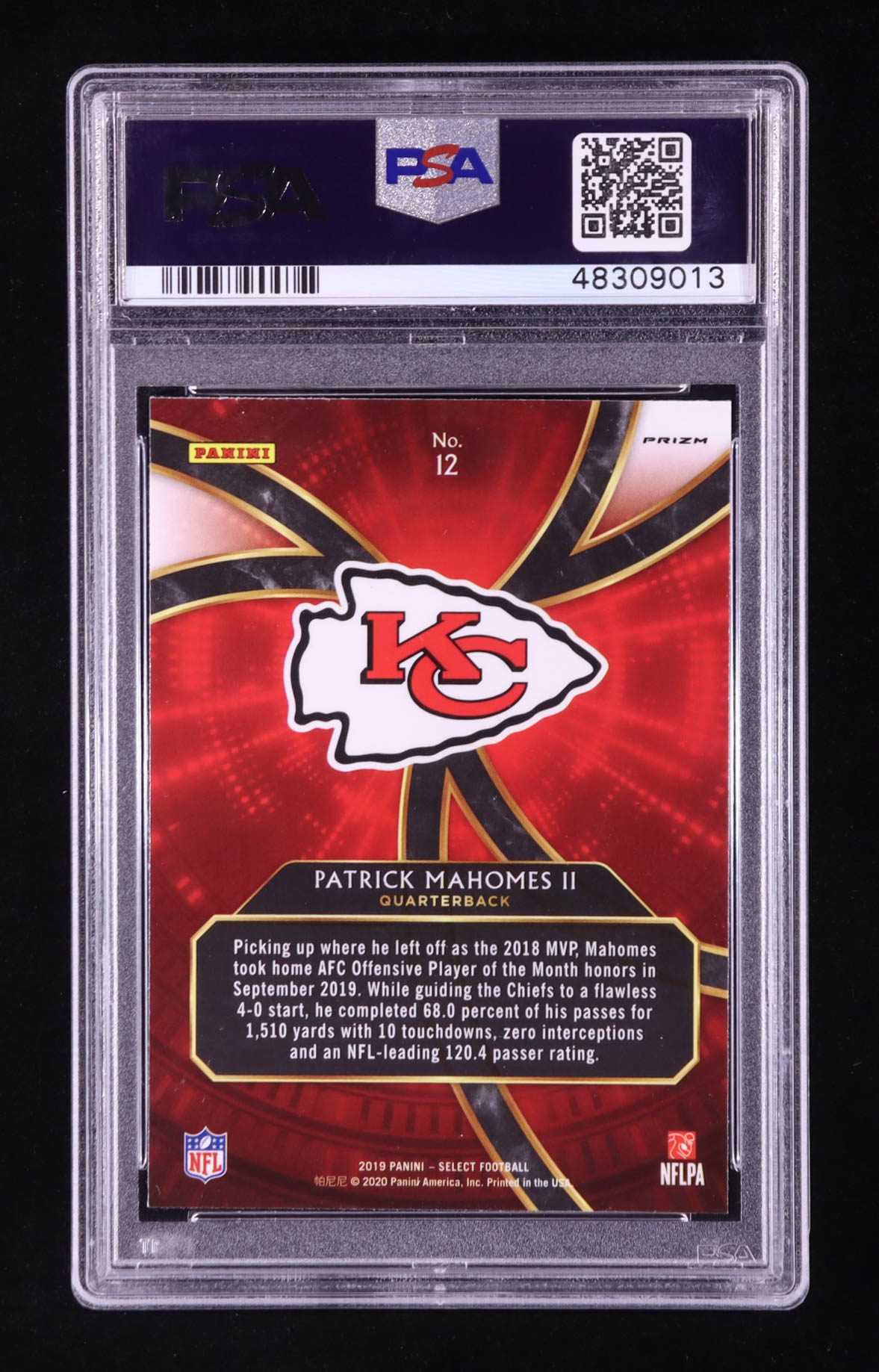 Patrick Mahomes II 2019 Select Phenomenon Prizm #12 (PSA 10)