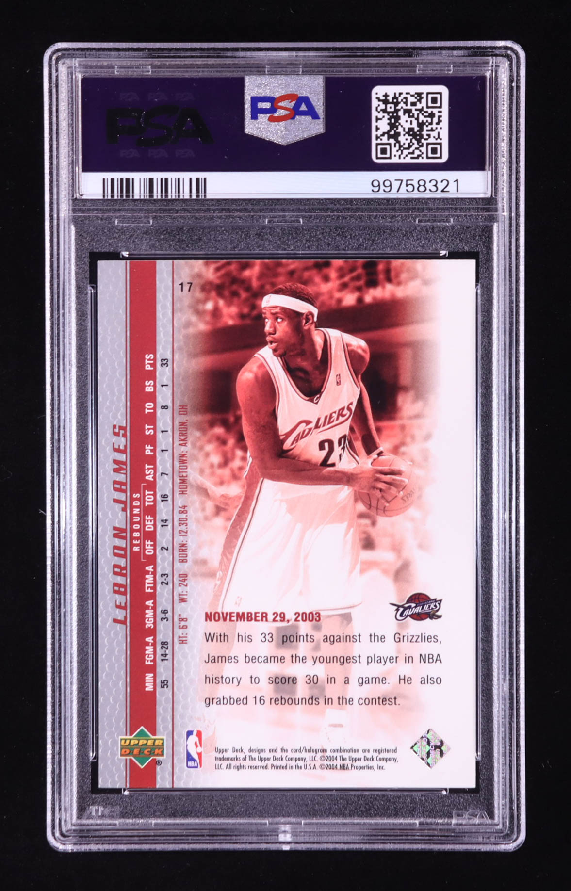 LeBron James 2003-04 Upper Deck Phenomenal Beginning LeBron James #17 RC (PSA 10)