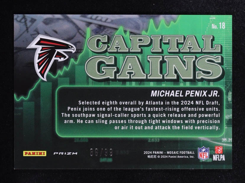 Michael Penix Jr. 2024 Panini Mosaic Capital Gains Mosaic Blue #18 #86/99 RC