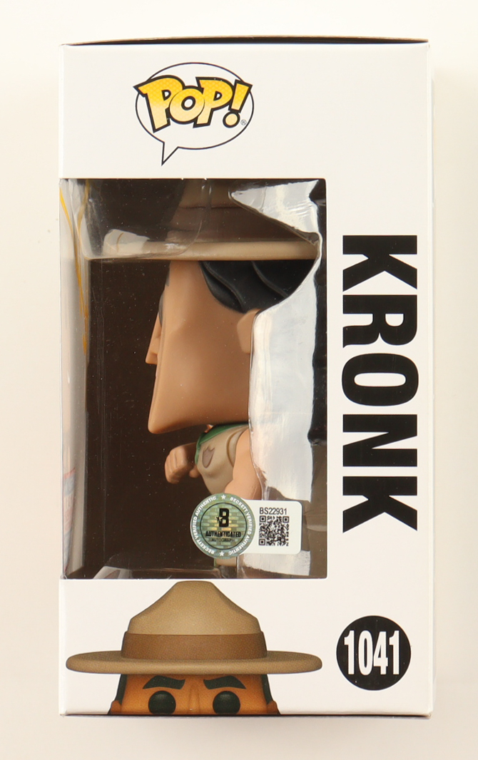 Vinyl figure measures approximately 4" tall and has been hand-signed on the packaging by Patrick Warburton (Kronk). Please note, there are tears on the corners and scuffing throughout the packaging.