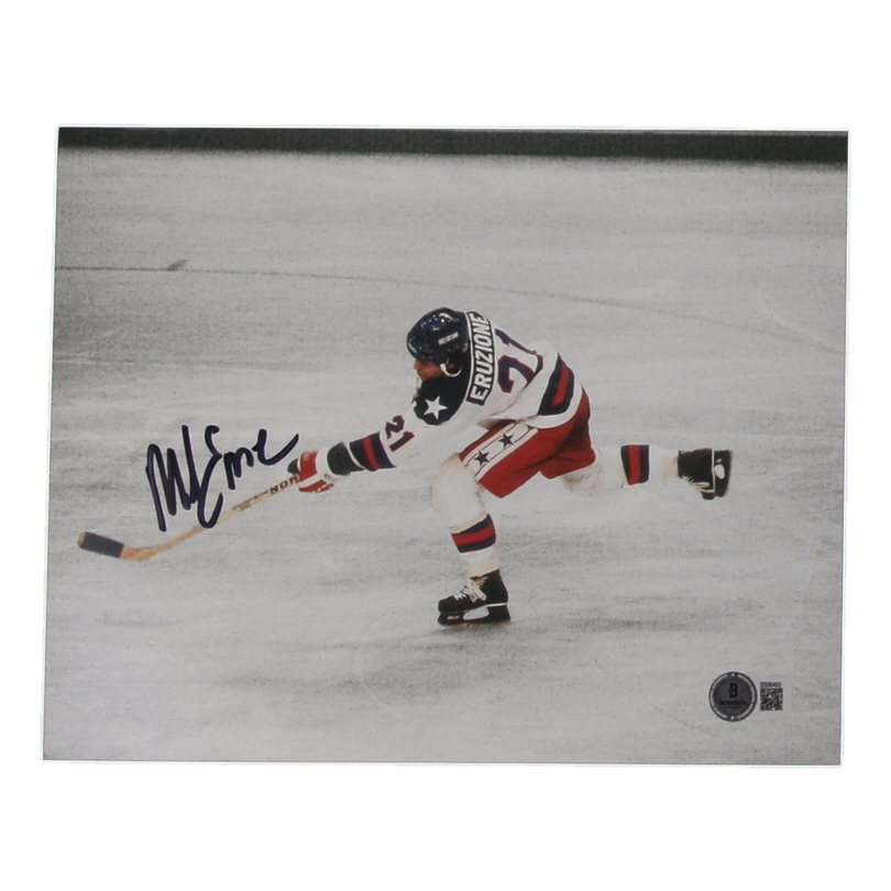 Photo measures 8" x 10" in size and has been hand-signed by Mike Eruzione.
