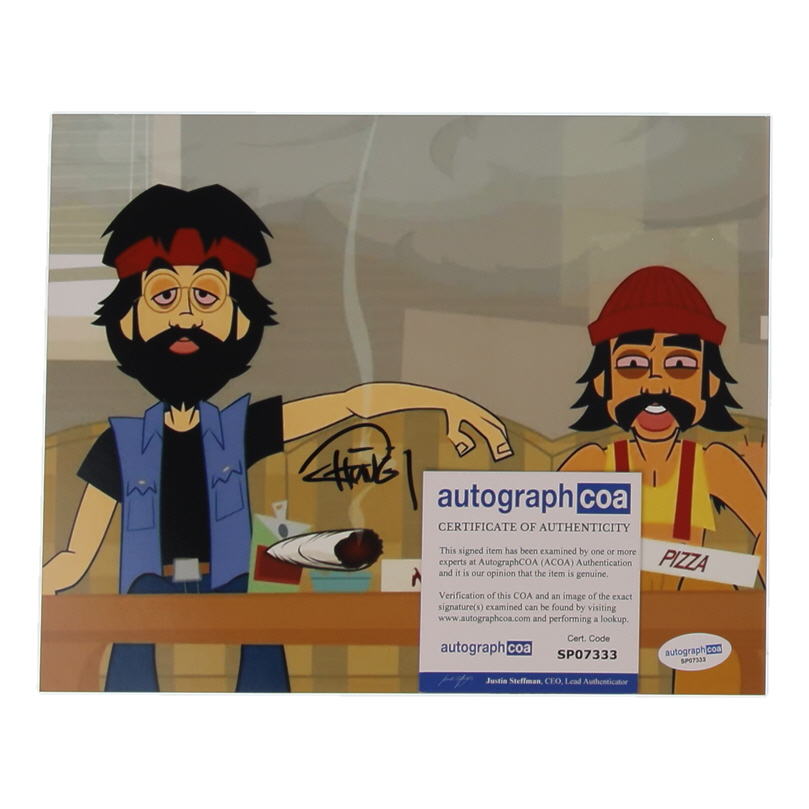 Photo measures 8" x 10" in size. Hand-signed by Tommy Chong.