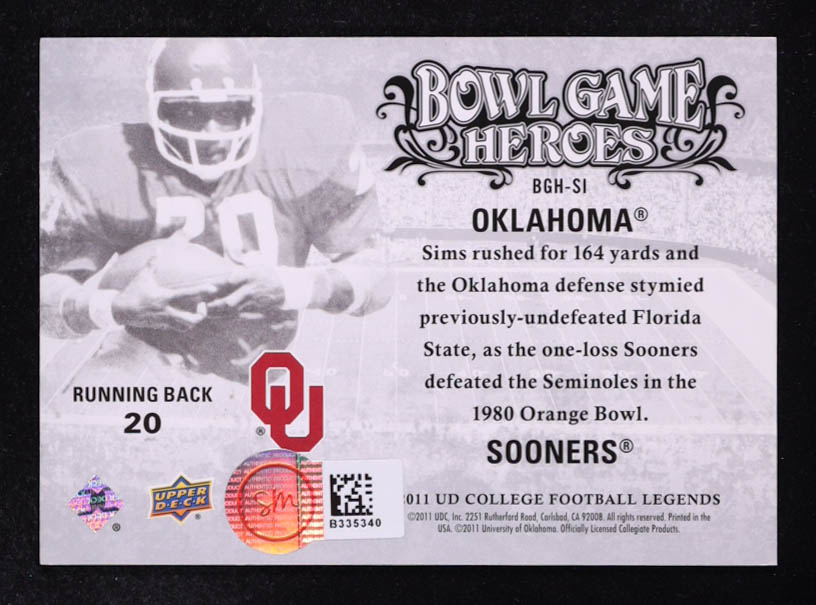 Billy Sims Signed 2011 Upper Deck College Legends Bowl Game Heroes #BGHSI (Sports Memorabilia)