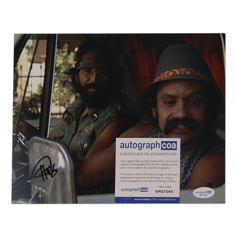 Photo measures 8" x 10" in size. Hand-signed by Tommy Chong.