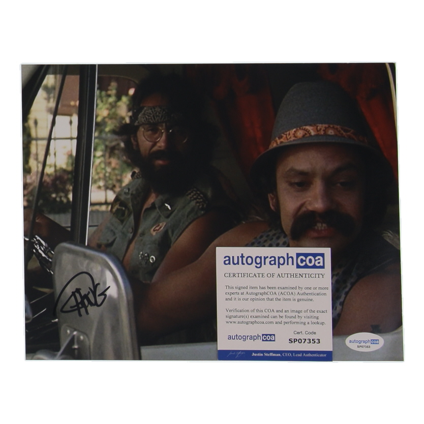 Photo measures 8" x 10" in size. Hand-signed by Tommy Chong.