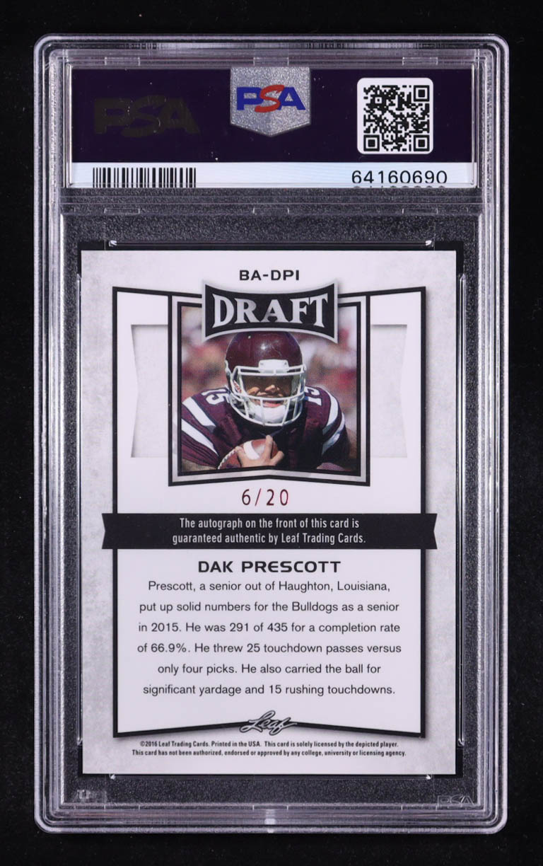 Dak Prescott 2016 Leaf Metal Draft Autographs Pink #BADP1 RC #6/20 (PSA 9)