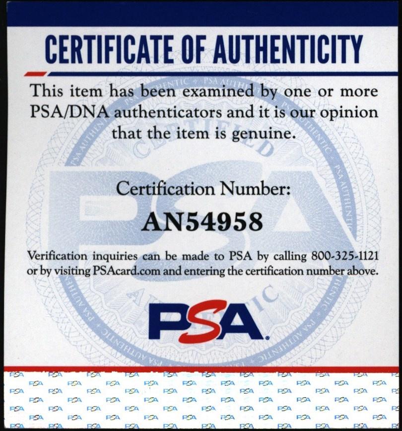 The autograph includes an official PSA/DNA hologram and matching COA for authenticity purposes.