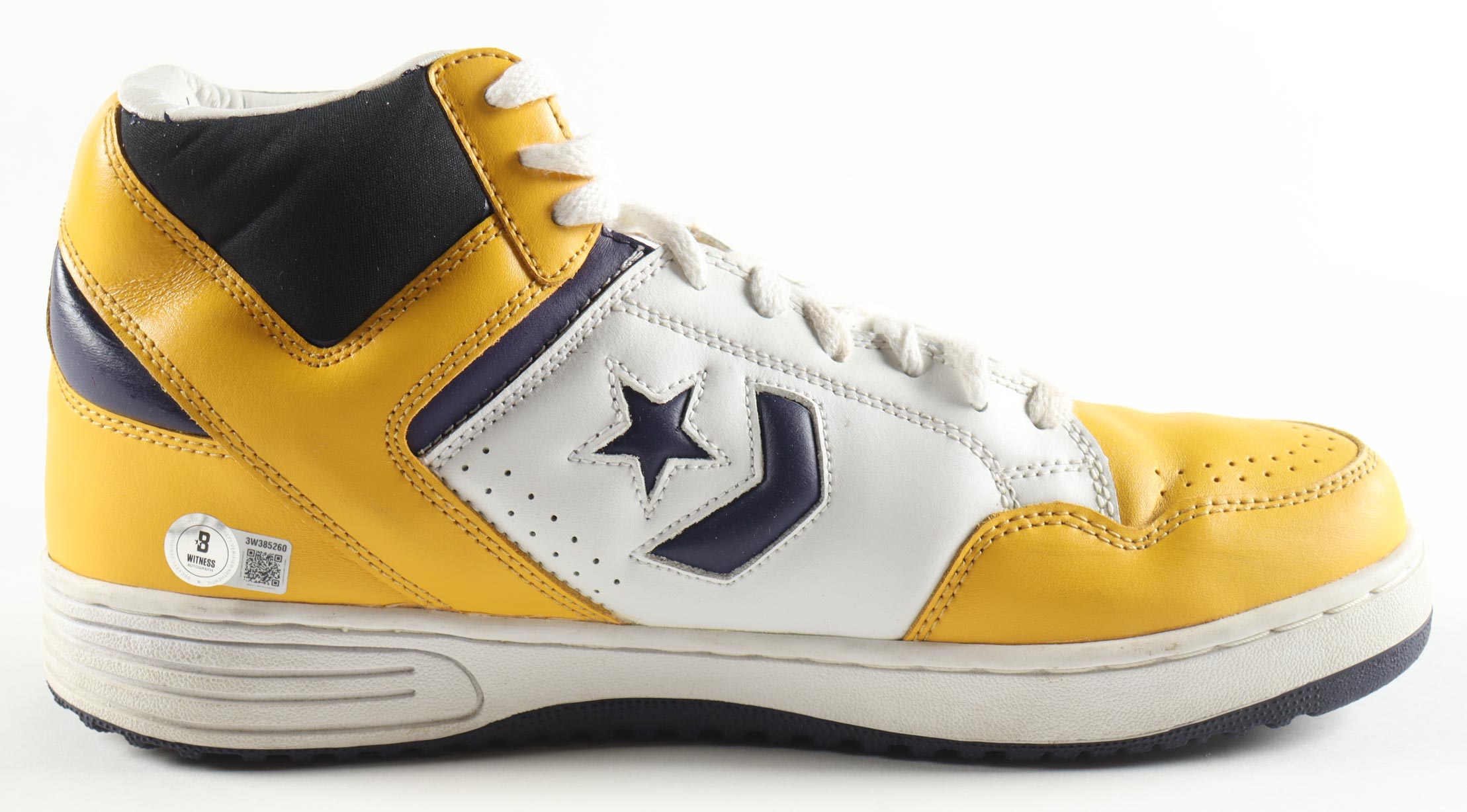 Converse Weapon Leather Basketball Shoes have been hand-signed by Magic Johnson (Los Angeles Lakers, HOF). Please note that the display case is included in the listing as shown above as well as a full Magic Johnson career statistics plaque.