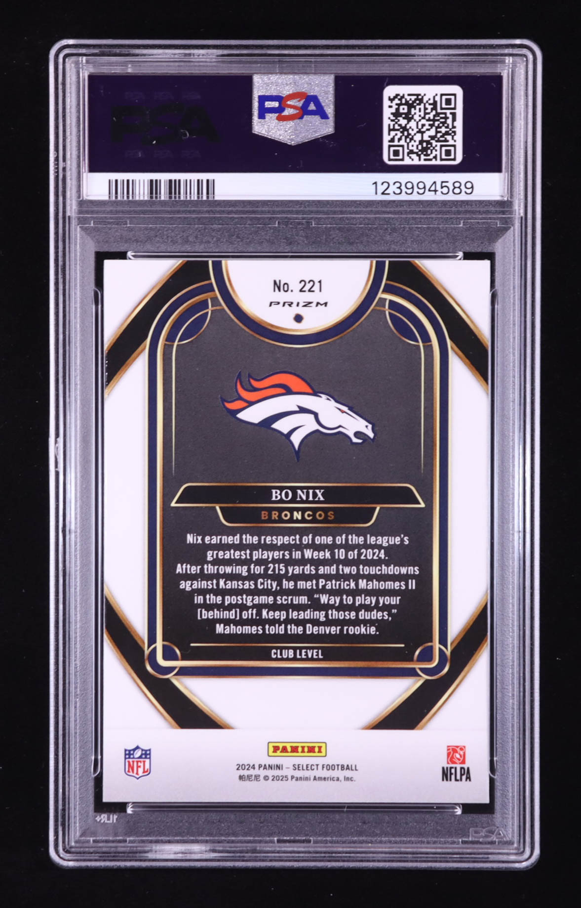 Bo Nix 2024 Select Prizm Red and Blue Shock #221 RC (PSA 10)
